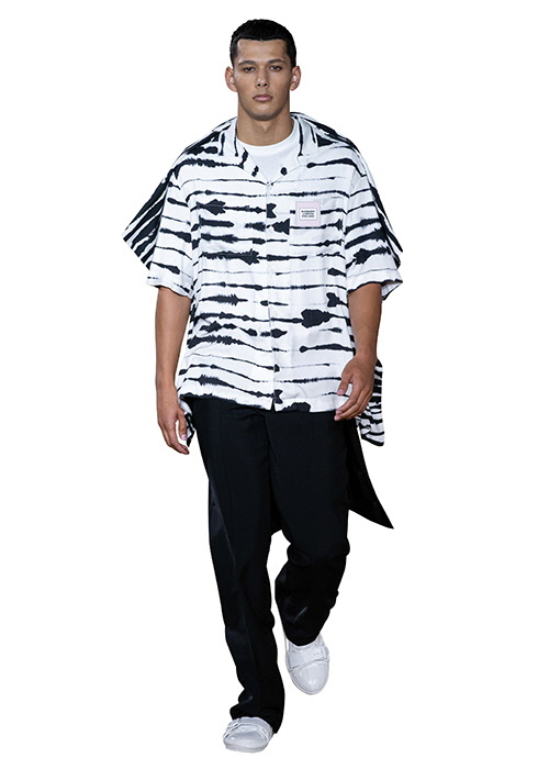 올봄 손으로 쓱 칠하고 물감을 흩뜨려 뿌린 추상적인 패턴, 홀치기 효과, 얼룩덜룩한 워싱 등이 남성 옷차림에 예술적 자유를 선사했다. 길거리에서 흔히 볼 수 있는 가벼움과는 거리가 멀다. 대충 우연의 효과를 노린 듯 자유분방한 무늬는 정교한 테일러링, 고급스러운 소재와 만나 하이패션으로 거듭났다. 디자이너들은 데님, 실크, 가죽 위에 아티스틱한 기법을 깔끔하고 세련되게 표현했는데, 카무플라주 패턴을 마치 추상화처럼 표현한 로샤스, 물감이 은은하게 번진 것 같은 수트를 선보인 에르메네질도 제냐가 대표적인 예.