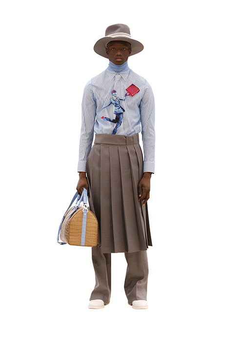 이전 디자이너들이 다양한 연령과 취향의 남성을 포괄하는 데 집중했다면, 이번 시즌은 소비자를 세분화하는 것이 강조되면서 다양성을 부각했다. 이런 경향을 대표하는 아이템으로는 치마, 퀼트, 튜닉 등이 있는데, 이들은 컬렉션의 중심에서 캐주얼 스타일부터 센슈얼한 스타일까지 폭넓게 전개되었다. 루이 비통 쇼에서 버질 아블로는 바지 위에 A라인 퀼트 스커트를 입은 다수의 모델을 무대에 세웠고, 드리스 반 노튼 쇼에서는 튜닉 스타일이 대세를 이뤘다. 퀼트나 튜닉 스커트를 입을 때는 무릎 바로 아래 길이에 이르는 여유롭고 유연한 스타일, 또는 커팅을 결합한 방식이나 주름 디테일을 살린 것을 택해 질감을 더한 스타일링을 제안한다. 좌: Skirt, Tunic & Quilt_OFF WHITE / 우: Skirt, Tunic & Quilt_LOUIS VUITTON