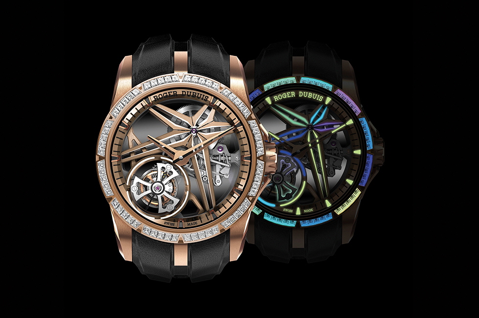 싱글 플라잉 투르비용 칼리버 RD512SQ를 탑재한 엑스칼리버 워치의 베젤에 60개의 바게트 컷 다이아몬드를 세팅하고, 그 홈의 테두리 네 면에 슈퍼루미노바를 채워 넣었다. 이는 로저드뷔가 세계 최초로 선보이는 기술로, 어두운 곳에서도 다이아몬드가 컬러풀하게 빛을 발한다. 그뿐 아니라 무브먼트를 구성하는 여러 부품 모서리와 아워 마커, 상징적인 별 장식의 브리지에도 슈퍼루미노바를 채워 넣어 더욱 화려하다. 케이스 지름 42mm, 전 세계 8피스 한정으로 선보인다.