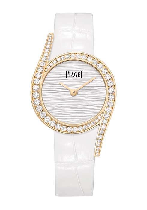 다이얼을 감싸는 유려한 곡선형의 비대칭 러그가 상징적인 피아제 ‘라임라이트 갈라’는 1970년대부터 시대를 초월해 사랑받아온 모델이다. 올해 등장한 다채로운 ‘라임라이트 갈라’ 신제품의 공통점은 팰리스 데코 기법을 활용한 장식적 효과가 두드러진다는 것. 특히 깨지기 쉬운 머더오브펄 소재에 팰리스 데코 공예를 더해 고귀한 아름다움을 강조한 ‘라임라이트 갈라 인그레이빙 마더 오브 펄’은 61개의 브릴리언트 컷 다이아몬드를 세팅하고 화이트 앨리게이터 레더 스트랩을 매치해 더욱 근사하다. 케이스 지름 26mm, 3백 피스 한정으로 선보인다.