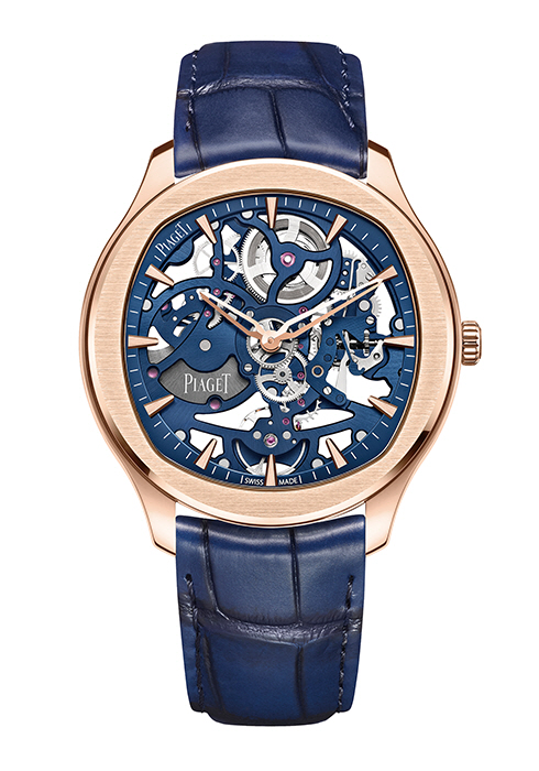 메종의 아이덴티티를 대변하는 ‘폴로 워치’에 섬세한 스켈레톤 기법을 적용했다. 화이트 골드 또는 로즈 골드, 두 가지 소재의 라운드 케이스는 지름 42mm, 두께 6.5mm로 쿠션형 다이얼을 품고있다. 내부가 들여다보이는 스켈레톤 다이얼과 앨리게이터 스트랩은 동일한 블루 컬러로 케이스와 뚜렷한 컬러 대비를 이룬다. 케이스 전면과 사파이어 크리스털 케이스 백을 통해 인하우스 오토매틱 무브먼트 G0A46009의 정교한 움직임을 확인할 수 있다.