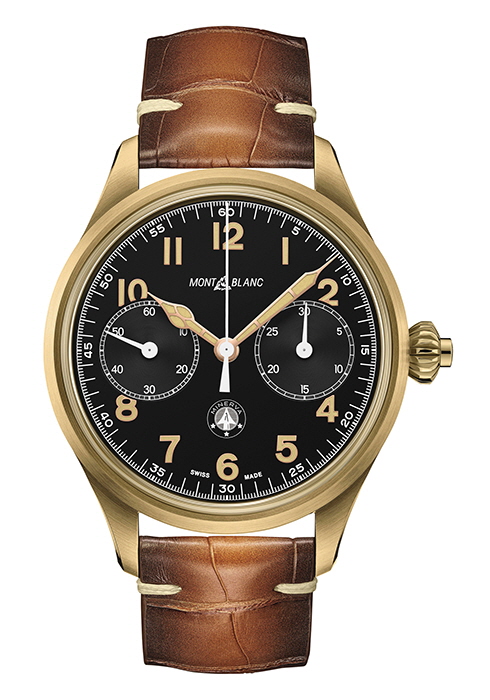 1930년대 출시한 역사적 타임피스 ‘밀리터리 모노푸셔 크로노그래프’를 재해석한 모델. 빈티지한 브러시드 브론즈 소재 케이스는 과거 여느 탐험가의 시계를 연상시키며, 커버를 여닫는 오피서 형태 케이스 백은 전통적인 하이엔드 포켓 워치를 떠올리게 한다. 특히 케이스 백 양쪽에는 미네르바의 유산을 상징하는 특별한 이미지와 문구를 인그레이빙했는데, 이를 열면 투명한 사파이어 크리스털 글라스를 통해 매뉴팩처 모노푸셔 크로노그래프 칼리버 MB M16.29의 정교한 기계적 아름다움을 확인할 수 있다. 3시 방향에 미닛 카운터, 9시 방향에 스몰 세컨즈가 자리하며 커다란 어니언 크라운 중앙의 모노푸셔를 통해 조작 가능하다. 전 세계 1백 피스 한정 출시한다.