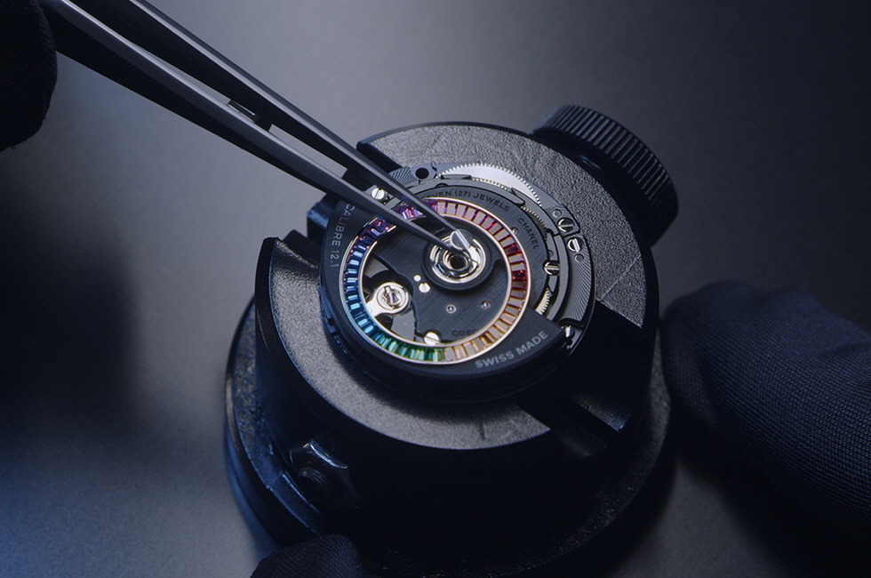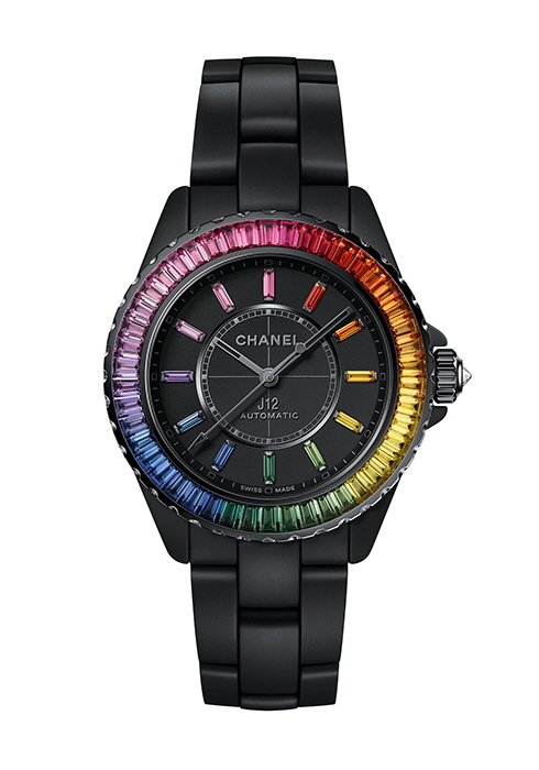 바젤을 떠나 올해부터 워치스 & 원더스에 합류한 샤넬 워치는 1980년대 일렉트로 뮤직에서 영감을 얻은 일렉트로 시리즈를 선보였다. 역동적이고 생동감 넘치는 음악처럼 화려한 컬러를 입은 컬렉션은 샤넬의 클래식 코드를 완벽하게 전복한 모습. 특히 네 가지 라인업으로 전개한 J12 일렉트로 에디션은 몽환적인 레인보 컬러 젬스톤 세팅이 돋보인다. 대표 모델인 ‘J12 일렉트로 드림’은 베젤과 아워 마커를 12가지 컬러의 바게트 컷 사파이어로 장식했다. 지름 33mm의 매트 블랙, 화이트 세라믹 케이스, 두 가지 버전으로 전개하며 각 55피스 한정 생산한다.