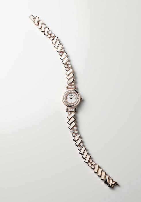 2014년 출시한 미니어처 워치 ‘포부르’의 초소형 라운드 케이스, 자개 다이얼 등 기본 구조를 차용한 쿼츠 무브먼트 워치. 브레이슬릿은 도트와 사선 모티브가 이어진 메시 스타일로 파인 주얼리 무드가 강하다. 화이트 골드 또는 로즈 골드 소재로 선보이며 다이아몬드 베젤 세팅, 전체 파베 세팅 등 총 다섯 가지 다채로운 디자인으로 전개한다. 케이스 지름은 15.5mm.