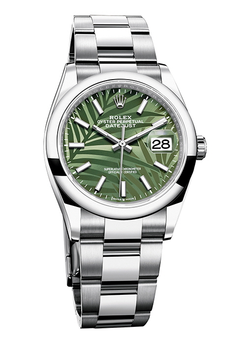 클래식을 상징하는 데이트저스트 모델이 보다 생기 넘치는 디자인으로 재탄생했다. 열대우림에서 영감을 얻은 팜 모티브로 브랜드의 시그너처 스타일 중 하나인 플루티드 모티브를 장식한 다이얼을 선보인 것. 올리브 그린·골드·실버 컬러 다이얼, 옐로우 롤레조·에버로즈 롤레조·오이스터 스틸 케이스, 오이스터·쥬빌리 브레이슬릿의 매력적 조합이 돋보이는 총 네 가지 버전의 신제품을 만나볼 수 있다. 자체 개발한 퍼페추얼 칼리버 3235를 탑재했다.