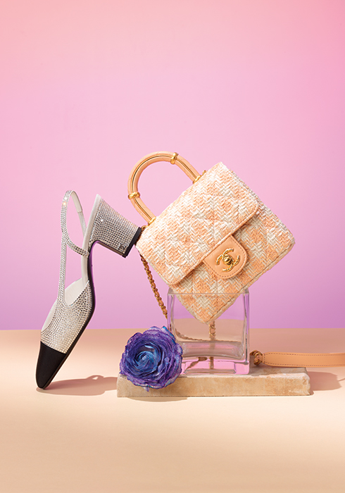 (왼쪽부터 차례대로) 스트라스와 그로그랭 소재로 반짝임을 더한 슬링백, 코럴 컬러의 트위드 소재에 램 스킨과 골드 매탈로 스트랩과 버클을 장식한 톱 핸들 미니 플랩 백 모두 가격 미정 샤넬. 문의 080-805-9628, chanel.com