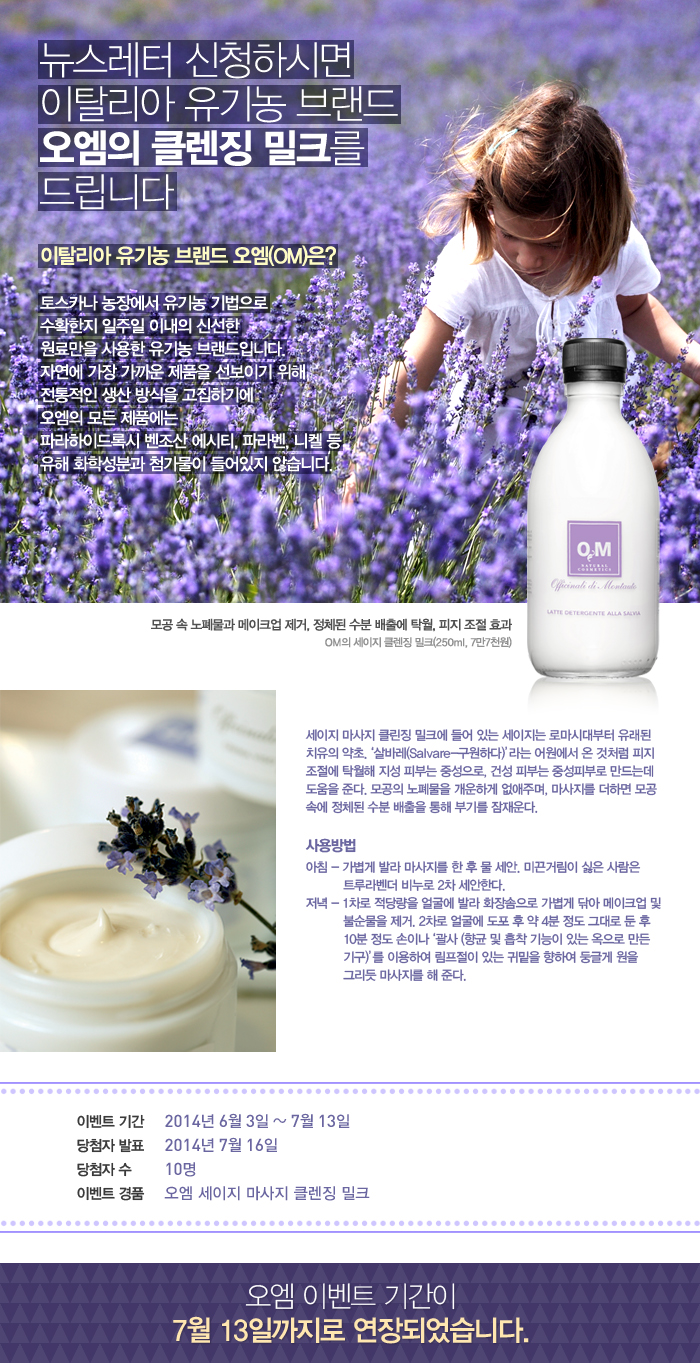 “이탈리아 유기농 브랜드 오엠의 클렌징 밀크를 드립니다”에 대한 1개의 생각