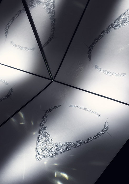 지난 10월, 까르띠에는 새로운 하이 주얼리 컬렉션, 까르띠에 마지씨앙과 까르띠에의 아카이브에서 영감을 받은 익셉셔널 피스를 도쿄 국립박물관 호케이칸(Hyokeikan) 갤러리에서 첫선을 보였다. 빛을 테마로 한, 까르띠에 하이 주얼리를 위한 특별한 공간은 들어선 순간 탄성을 자아낼 정도로 신비롭고 이름다웠다. 마치 우주에 들어와 수많은 별들과 조우한 느낌. 까르띠에 하이 주얼리의 마법이 이미 시작된 것이다. 까르띠에가 이날 선보인 마지씨앙 컬렉션은 그 어떤 주얼리보다 생동감 넘치고 섬세한 디자인으로 눈길을 사로잡았다. 다이아몬드는 때론 섬세하게 배치되어 밀도 있는 볼륨감으로 존재감을 드러냈고, 빛의 굴절 현상으로 끊임없이 반사되는 정교한 광채는 빛의 아름다움을 실감하게 해주었다. 보는 순간 압도되는 주얼리의 스케일 또한 특별했는데, 마치 건축물과도 같은 주얼리는 과연 주얼리의 한계는 어디까지일지, 경이로움을 느끼게 할 정도였다. 1백 년 이상 주얼리를 탐구해온 까르띠에의 역량을 고스란히 눈으로 확인할 수 있었다고나 할까. 마지씨앙 하이 주얼리의 두 번째 마법은 바로 디자인. 환상적인 자태로 시선을 사로잡는 매혹적인 실루엣은 까르띠에만의 독창적인 디자인을 통해 표현된다. 목걸이는 리듬감 있게 움직이며 멀티 디자인으로 변신해 기존 주얼리를 뛰어넘는 상상력을 바로 눈앞에서 구현, 진정한 마법과도 같은 장인 정신과 세공 기술력을 보여주었다. 또 다양한 컬러 스톤을 사용한 주얼리는 때론 에스닉하게, 때론 그래픽적으로 모던하고 유니크한 작품으로 선보였으며, 규칙적으로 평행한 형태와 비대칭적인 라인 등은 서로 조화를 이루며 주얼리 디자인의 독창성을 강조했다.