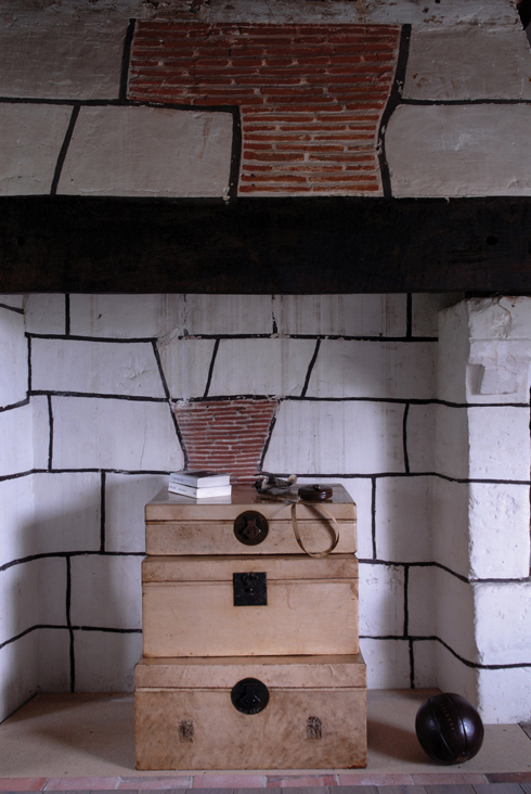 4 계단 올라가는 부분의 블랙과 화이트 장식(목재 골조가 드러난 콜롱바주 양식 건축과 얼룩말 머리 장식, 그리고 바닥의 바둑판 무늬 타일 마감)은 매트한 페인트(라 세뉴리, La Seigneurie 제품)로 마감한 오래된 계단과 아주 잘 어울린다. 계단은 다시 채색한 레드 앤티크 타일로 마감했다.
