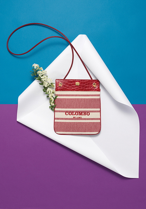 휴대폰이나 카드 등을 수납하기 좋도록 가볍고 실용적으로 디자인한 크로스 백. 변형한 머린 스트라이프를 프린트한 코튼 캔버스 소재에 악어가죽을 매치하고 112cm의 소가죽 숄더 스트랩을 매치했다. 캐주얼한 형태라 세컨드 백으로 활용 가능하다. 마레 스트라이프 유크로스 백 20X23.5cm, 1백78만원 콜롬보 비아 델라 스피가.