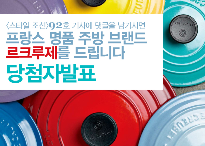 92호 기사 댓글 이벤트 당첨자 발표 작성일자: 5월 29, 2013 글쓴이: stylechosun 조회수: 2201 5월 29, 2013 이벤트에 응모해 주신 분들께 진심으로 감사의 말씀을 드립니다 르크루제 이벤트 당첨자 명단은 아래와 같습니다. 무쇠 냄비 (2명) yooni78 smilenergy 무쇠그릴 (2명) youngzoo youjenia 당첨되신 모든 분들 축하드립니다. 글 네비게이션 이전글베네피트와 함께 송지효 메이크업 도전하기 다음글스타일 조선일보 독자 6분에게 다미아니 러브 브레이슬릿을 드립니다.