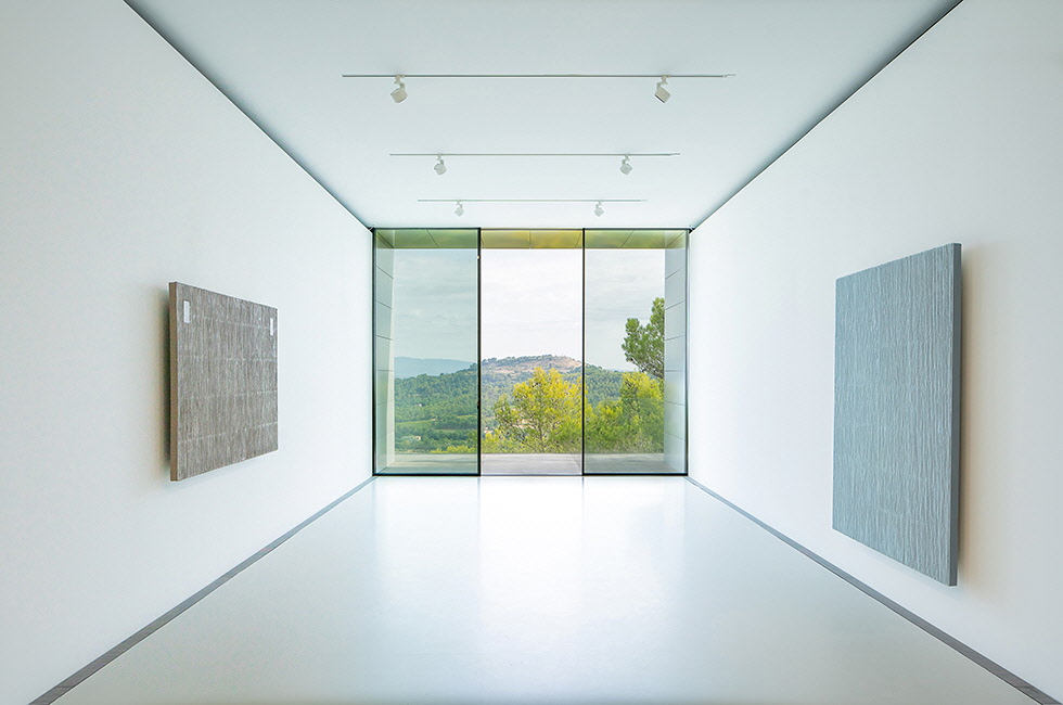 한쪽 끝이 고정되고 다른 끝은 받쳐지지 않은 ‘외팔보(cantilever)’ 형식으로 지은 이 갤러리는 ‘공중에 떠 있는(floating) 갤러리’라 불린다. 가파른 비탈에 살짝 걸쳐져 있는 느낌이라 위태로워 보이기도, 경쾌해 보이기도 한다. 안에 들어서 양쪽 벽을 감싼 그림들이 천혜의 자연을 감상할 수 있는 통창을 가운데 두고 펼쳐지는 광경이 사진으로만 봐도 아름답기 그지없다. 무려 200만m2(60만5천 평)에 이르는 넓디넓은 샤토 라 코스트에는 너른 포도밭을 병풍처럼 두고 프랭크 게리, 장 누벨, 루이즈 부르주아 등 세계적인 예술가들의 조각이나 설치 작품이 여기저기 놓여 있는데, 그야말로 황홀한 감각적 경험을 선사하는 자연 속 ‘아트 센터’다. 개인적으로 필자의 ‘최애’ 방문지 중 하나로 뇌리에 깊이 각인되어 있기도 한 곳인데, 여기에 리처드 로저스 드로잉 갤러리의 ‘입성’으로 또 하나의 명물이 추가됐다. “아주 기가 막히죠?” 실제로 국제갤러리 간담회에서 만난 박서보 화백도 샤토 라 코스트의 매혹적인 아름다움에 거듭 찬사를 보내며 코로나19로 직접 프로방스로 떠나지 못하는 현실을 못내 아쉬워했다. 그래도 수년 전 방문했다가 샤토 라 코스트라는 공간의 미학에 매료되어 꼭 전시를 열고 싶었다는 박 화백의 소망은 이뤄진 셈이다.