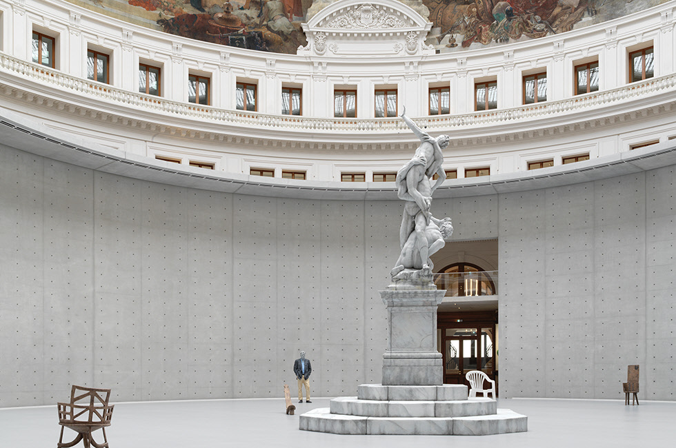 아담한 소도시로 이루어진 프로방스 지역이 이러할진대 수도인 파리가 팔짱 끼고 유유자적할 리 없다. 실제로 올 들어 파리의 도시 풍경에는 새롭고도 강력한 활력소가 더해졌다. 하나는 문화 예술계를 들썩인 피노 컬렉션의 어마어마한 전시 공간이다. LVMH 그룹의 베르나르 아르노 회장과 더불어 럭셔리업계의 양대 산맥이자 둘째가라면 서러워할 예술계 큰손이기도 한 프랑수아 피노 회장의 현대미술품 컬렉션을 모아놓은 파리의 프로젝트가 마침내 결실을 맺은 것이다. 피노는 현재 구찌, 생 로랑, 발렌시아가 등의 브랜드를 거느린 케어링 그룹의 창업주(아들인 프랑수아-앙리 피노 회장이 현재 케어링 그룹의 수장이다)로 베니스에 황홀할 만큼 아름다운 전시 공간을 두 곳에 두고 있었지만, 자신의 모국 수도에 미술관을 여는 건 남다른 의미가 있을 터. 그가 평생에 걸쳐 수집해온 컬렉션을 담아낸 그릇은 심지어 파리 도심 레알 지역의 역사적 기념물인 옛 상업거래소(Bourse de Commerce) 건물이다. 피노 명예 회장의 베니스 프로젝트를 도운 안도 다다오가 레노베이션 작업을 맡았는데, 지난봄 서막을 알리는 개관전 <Ouverture>와 더불어 대중에 공개되면서 세간의 이목을 집중시켰다. 수 세기 전의 시대를 아우르는 화려한 프랑스 건축양식과 안도 다다오 특유의 노출 콘크리트의 묘미를 살린 미니멀한 설계 미학의 앙상블뿐 아니라 다국적 작가들을 품은 컬렉션 자체도 큰 화제를 불러일으켰음은 물론이다. 특히 미술관의 중심축인 원형 전시관 로통드 홀은 외부의 빛이 스며드는 유리 돔 천장과 콘크리트 실린더의 조화가 압권인데, 여기에 우르스 피셔의 왁스 조각 시리즈와 19세기 천장화의 대비가 대구를 이루는 듯하다.
