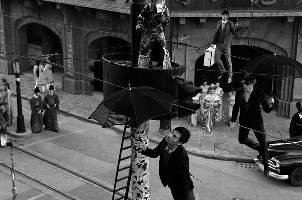 젠틀몬스터와 펜디의 만남을 보면 이종 간의 협업만이 아니라 넓게 보면 같은 패션계에 속한 두 브랜드 사이에서 일어나는 시너지도 흥미롭다. 우리나라 패션 아이웨어 브랜드이며 예술 작품으로 수놓은 공간 디자인이 돋보이는 쇼룸을 운영하는 등 창의적 마케팅에서 발군의 솜씨를 보여온 젠틀몬스터가 이탈리아 명품 브랜드 펜디와 ‘젠틀펜디’ 컬렉션을 내놓았는데, 러시아 아티스트 컬렉티브로 초현실주의 작품을 보는 듯 몽환적이고 세련된 감성을 지닌 AES+F가 영상과 포스터 등을 아우르는 캠페인(2019)을 맡으며 시너지를 이끌어냈다. 또 AES+F가 젠틀몬스터의 아이웨어 라인업인 ‘나노컬렉션’ 캠페인의 일환으로 진행한 <생명의 순환>(2021)이라는 짧지만 강렬한 영상 작업(싱글 채널 필름)도 이번 전시에서 상영되고 있다. 요즘 패션 브랜드들은 단순히 광고 캠페인으로 보기에는 아까울 정도로 영화를 방불케 하는 스토리텔링과 미학을 곁들인 영상 작업을 앞다퉈 선보이고 있는데, 현대미술에 ‘진심’인 브랜드로 수십 년에 걸쳐 작가들을 후원하고 협업을 진행해온 프라다는 이 분야의 선구자 중 하나로 꼽힐 만하다. 이번 <예술과 산업> 전시에서도 중국 출신의 세계적인 현대미술가 양푸동(Yang Fudong)과 협업해 완성한 ‘처음 맞는 봄’(2010)이 소개되고 있는데, 현대를 살아가는 주인공들이 우연히 과거 중국 왕조시대 사람들을 만나는 내용을 1930년 상하이를 무대로 담아냈다. 프라다 제품들이 등장하지만 어색하지 않고 중국의 전통 인식에 대한 부재를 시각화하면서 생각할 거리까지 제시하는 등 상업과 예술 사이를 묘하게 오가면서 풀어내는 양푸동의 솜씨가 발군이다. 예술과 산업의 결합이 반드시 긍정적인 효과만 내지는 않겠지만, 상생의 시너지를 발산하는 창조적 지점이 궁금하다면 찾아볼 만한 전시다.
