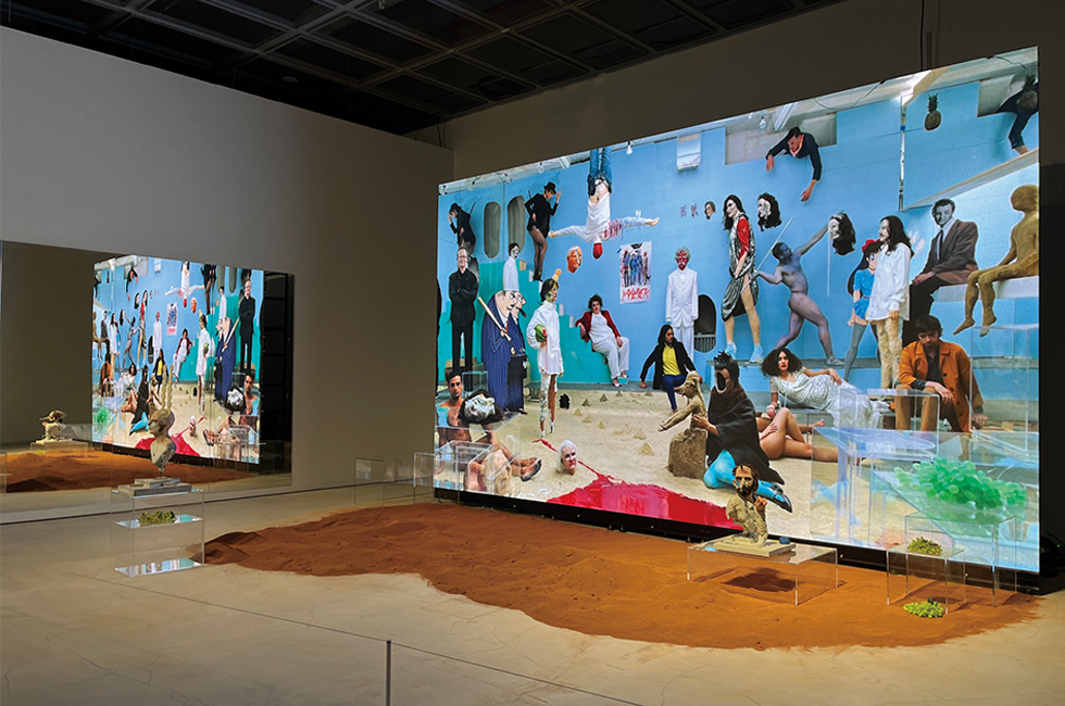 뮤직비디오를 둘러싼 아티스트 협업도 인상적이다. 루이 비통과의 협업으로 명성 자자한 일본 현대미술가 무라카미 다카시가 미국 싱어송라이터 빌리 아일리시(Billie Eilish)의 데뷔 앨범 에 수록된 곡 ‘You Should See Me in a Crown’ 뮤직비디오를 애니메이션 형식으로 새롭게 해석한 작품(2019)인데, 도입 부분의 녹색 캐릭터는 빌리 아일리시가 직접 만들기도 했다. 이후 빌리 아일리시는 ‘My Future’(2020) 뮤직비디오 역시 애니메이션 형식으로 발표했다. 이렇듯 시각 예술과 뮤지션의 만남이라는 계보에서 인상적인 사례는 얼터너티브 록 밴드 예세이어(Yeasayer)가 네 번째 앨범 <아멘 & 굿바이(Amen & Goodbye)>(2016) 커버 작업에서 펼친 캐나다 출신의 현대미술가 데이비드 알트메즈(David Altmejd)와의 협업이다. 음악 앨범의 정체성을 대표하고, 더 나아가서는 뮤지션의 색깔을 상징할 만한 중대한 역할을 했기 때문이다. 예세이어가 오랫동안 작가로서 좋아했던 알트메즈에게 요청해 이뤄진 이 협업에서 작가는 곡의 가사에 등장하는 인물들을 일련의 조각으로 제작했는데, 도널드 트럼프 미국 45대 대통령, 소설가 마크 트웨인, 그리고 예세이어 밴드 멤버들의 얼굴을 본뜬 조각들이 부식되거나 파손된 채 앨범 커버 사진 촬영 무대를 채우고 있는 기괴한 이미지들이 발산하는 강력한 오라를 이번 전시에서도 확인할 수 있다.