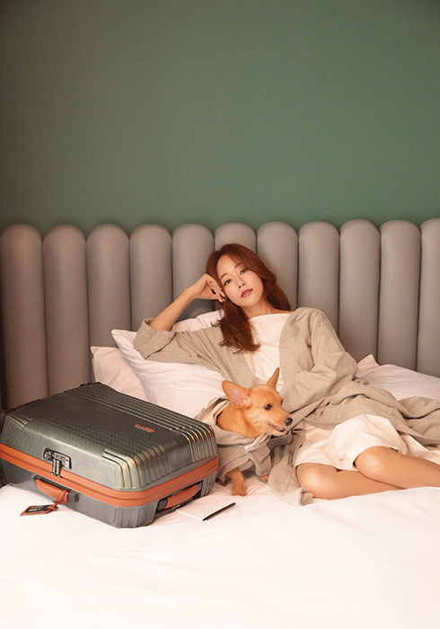 최고급 미국산 벨팅 레더 디테일이 포인트인 클래식한 디자인의 ‘인텐시티 SPL’. 하트만의 전통을 담은 시그너처 디자인으로, 기존 모델에서 디테일을 업그레이드해 품격을 한 단계 높였다. 인텐시티 SPL 알루미늄 컬러 20인치, 골드 컬러 25인치 모두 하트만.“효심이는 유기견 보호소에서 데려온 아이예요. ‘효진이의 마음’이란 뜻을 담아 이름을 지었죠. 효심이는 제 삶의 일부이고 가족이고 사랑이에요. 전 매일 효심이를 통해 치유받아요. 효심이와 함께한 이후부터 동물과 환경을 사랑하게 되었고, 제 인생도 달라졌어요.” _배우 김효진점프 수트 문초이 슈즈 렉토 주얼리 티파니