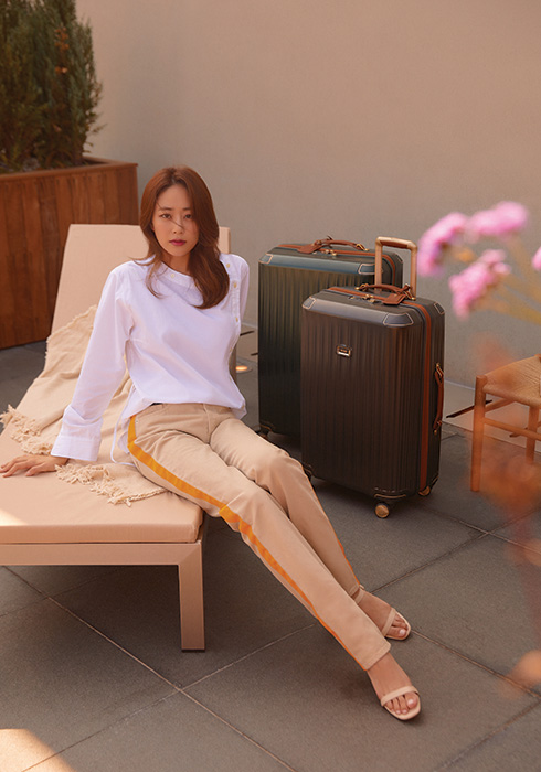 하트만의 독보적인 컬러 코드를 엿볼 수 있는 세련된 스틸 블루 컬러의 ‘7R 마스터’ 캐리어. 내구성이 뛰어난 탄탄한 알루미늄 소재에 고급스러운 가죽 디테일을 더해 여행의 품격을 높여준다. 내부 구성 또한 스트랩 등으로 내용물이 흐트러지지 않도록 설계해 실용적이다. 스틸 블루 컬러 30인치 하트만.톱 몬츠 팬츠 르비에르 슈즈 레이첼 콕스 브레이슬릿 티파니