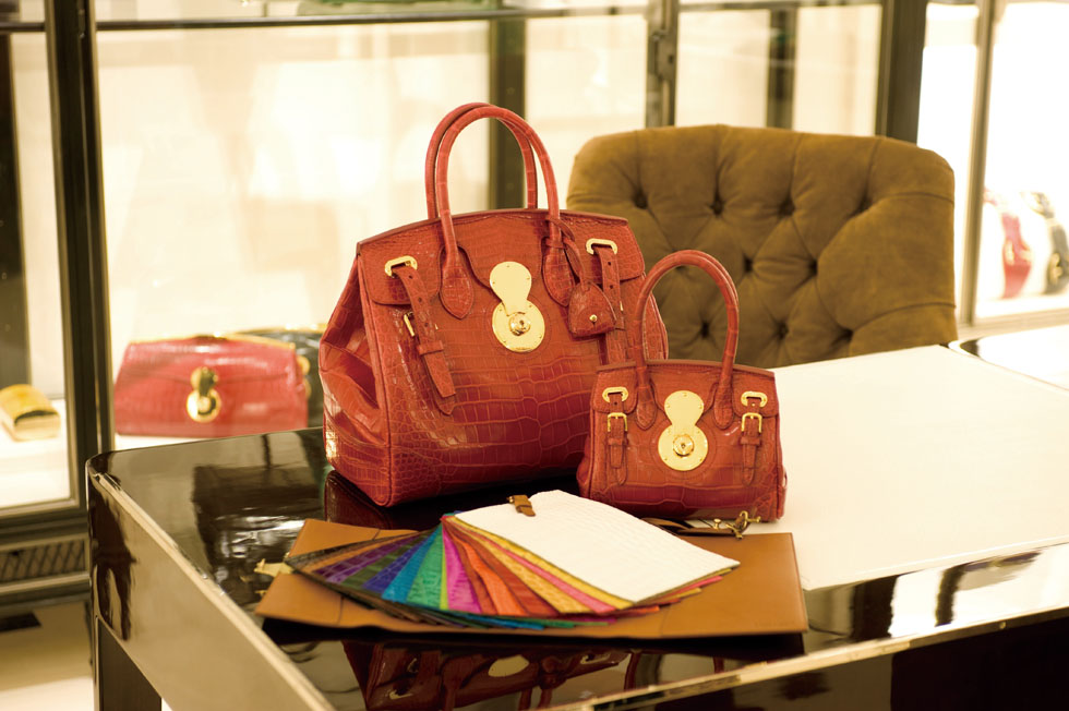 미국 뉴욕의 브롱크스에서 태어난 창립자 랄프 로렌은 화가였던 아버지에게서 색에 대한 천부적인 감성을 물려받았다. 이는 패션 감각으로 이어져 그의 옷차림은 학교 친구들 사이에서 늘 화제가 됐다고 전해진다. 대학에서 경영학을 공부하던 그는 입학 2년 만에 중퇴하고 미국의 신사복 전문점 브룩스 브러더스(Brooks Brothers)의 판매 사원으로 일하면서 패션계에 발을 들여놓았다. 이후 넥타이 제조 회사인 리베츠 앤드 컴퍼니(Rivetz & Co)에서 넥타이를 판매하던 랄프 로렌은 당시 유행하던 폭이 좁은 회색 계열의 넥타이 대신 두꺼운 원단에 폭이 넓은 넥타이를 디자인했고, 넥타이 제조 회사인 보 브러멜(Beau Brummell)의 도움을 받아 폴로(Polo)라는 이름으로 넥타이를 판매, 패션계의 주목을 받기 시작했다. 랄프 로렌은 1968년 ‘폴로 바이 랄프 로렌(Polo by Ralph Lauren)’을 선보이며 남성 패션의 독보적 존재로 자리 잡았고, 여성복까지 그 영역을 넓히며 세계적인 디자이너로 성장했다. 현재 랄프 로렌은 남성복과 여성복을 비롯해 14여 개의 브랜드를 운영 중이며 이탈리아에서 장인의 수작업으로 제작되는 랄프 로렌 컬렉션의 리키 백을 통해 브랜드의 장인 정신을 보여준다. 리키 백(Ricky Bag)은 랄프 로렌의 아내이자 뮤즈(영감을 주는 존재)인 리키 로렌의 이름에서 착안해 만든 것으로 럭셔리의 정수를 보여주는 가방이라 평가받는다. 리키 백은 쿠퍼 캐리어 백에서 영감을 받았는데, 이는 19세기 후반 말안장을 보관하던 여행용 가방으로, 쿠퍼는 당시 영국에서 활동한 장인이자 말안장 가방을 고안해낸 인물이다. 쿠퍼 캐리어 백을 제작할 때 사용한 기법들은 현재 리키 백 제작에도 사용되고 있으며 정교한 기술을 구사하는 이탈리아의 장인들에 의해 모두 수공으로 이뤄진다. 리키 백에는 50개의 개별 가죽 조각을 사용하는데 앨리게이터(미국산 악어가죽) 통가죽에 형태를 그리고 이를 손으로 직접 잘라 가방을 구성하는 조각을 만든다. 각각의 앨리게이터 조각은 가방을 구성하는 면의 두께와 느낌이 일정하도록 손으로 얇게 벗겨 다듬는다. 그런 다음 손잡이와 가죽 라이닝(안이나 밖을 가죽으로 덧바르거나 붙여 표면을 보호하는 일) 등을 손바느질로 고정한다. 쇠고리와 자물쇠 등의 장식 역시 장인이 수작업으로 부착한다. 이 밖에 분리되어 있던 모든 가죽 조각을 손바느질로 연결하면서 가방을 거꾸로 뒤집는데, 이 작업은 고도로 숙련된 장인 2명이 진행한다. 참고로 앨리게이터 리키 백 1개를 만드는 데 4마리의 악어가 필요하며 1등급 앨리게이터 부위 중에서도 가장 부드러운 배 가죽만 사용한다.