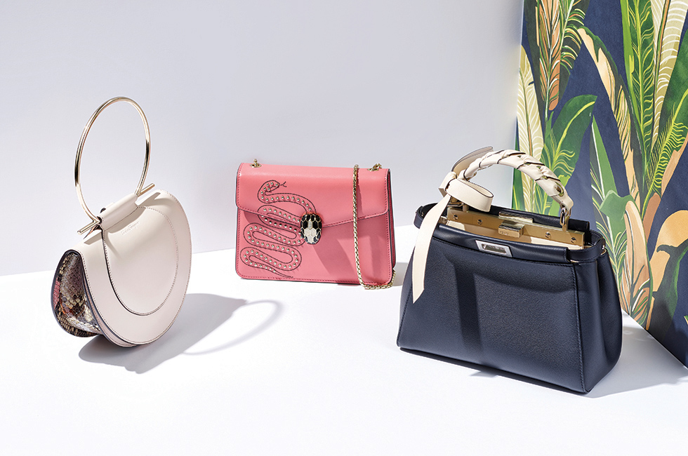 펜디 미니 피카부 백 펜디의 아이코닉 백인 피카부 백의 2018 S/S 신제품. 이번 시즌엔 핸들에 여성스러운 가죽 레이스업 리본으로 포인트를 주었다. 핸들 장식과 가방 내부 컬러를 통일시킨 점도 매력 포인트. 23X17cm 4백55만원.