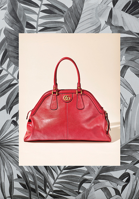 구찌 르벨 백 레트로 무드가 가득한 레드 컬러의 빅 백. 자연스럽고 거친 질감이 돋보이는 버펄로 가죽을 사용했으며 앞면엔 아이코닉한 GG 로고로, 뒷면엔 타이거 디테일로 포인트를 주었다. 50X30cm 4백40만원.
