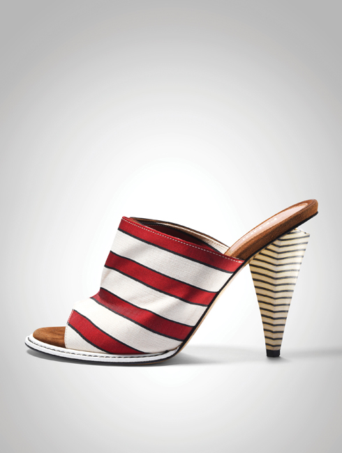 이탈리아의 건축물에서 영감을 받아 기하학적 커팅과 구조적인 디자인이 특징인 스트라이프 슈즈 1백15만원 펜디.