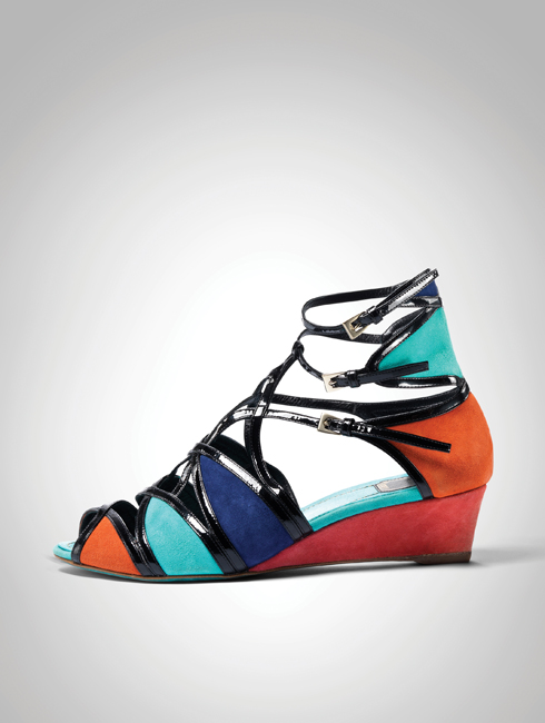 스웨이드 소재에 유색 크리스털을 세팅해 화려한 멋을 더한 샌들 1백98만원 체사레 파치오티.