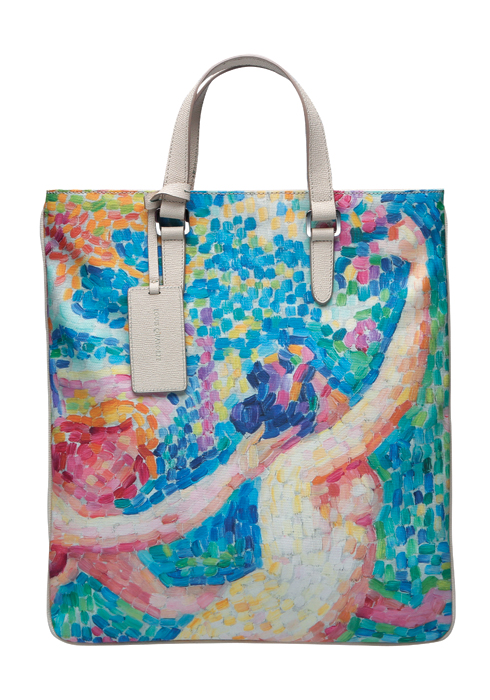 올해 루이까또즈의 창의성에 바탕이 되는 것은 한국인들이 무척이나 사랑하는 ‘인상파’와 그 뒤를 잇는 유명 화가들이다. 현재 국립중앙박물관에서 성황리에 열리고 있는 의 실제 전시(www.orsay2014.co.kr) 작품을 녹여낸 ‘오르세 라인(Orsay Line)’이 바로 그 결실이다. 먼저 앙리 루소(Henri Rousseau)의 ‘뱀을 부리는 여인’, 앙리-에드몽 크로스(Henri-Edmond Cross)의 ‘요정들의 추방’을 담아낸 듀엣 백 2종. 2명의 ‘앙리’를 동원한 이 백들은 체로키 원단을 사용해 구김과 틀어짐을 보완하고 오염과 이염을 방지하는 데도 역점을 뒀다고. 실제로 이번 전시에서 가장 주목받는 작품으로 꼽히는 앙리 루소의 작품을 택한 건 탁월한 선택인 듯하다. 전시 공간의 마지막 방을 지키고 있는 이 그림은 창백한 달 아래 검은 여인을 조형물처럼 등장시킨 신비한 분위기가 관람객의 발걸음을 오래도록 멈추게 한다. 사실주의와 인상주의에 대한 반동으로 등장한 상징주의 화가에 속하는 앙리 루소는 독학으로 그림을 배웠는데, 파리에서 평생을 살았으면서도 동식물의 세계를 놀랍도록 대범하고 몽환적으로 표현하는 자신만의 독특한 작품 세계를 구축한 작가다. 두 번째 백은 또 다른 앙리의 작품인 ‘요정들의 추방’을 바탕으로 한다. 색채를 조화롭게 다루는 앙리-에드몽 크로스의 이 그림은 문명의 때가 묻지 않은 이상향을 연상케 하는데, 스테판 말라르메가 쓴 장편 시 ‘목신의 오후’에서 영감을 받았다고. 조르주 쇠라를 필두로 한 신인상주의 작가에 속하는 앙리-에드몽 크로스의 점묘 기법이 인상적이다.