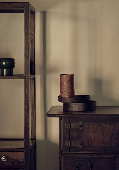 옻칠공예가 유남권은 종이로 만든 기물을 옻칠로 마감하는 전통 기법인 ‘지태칠기’를 활용해 작업하는 것으로 유명하다. 거친 질감 위로 옻칠이 스며들고 겹치게 하는 과정을 반복하면서 작가만의 ‘겹’을 쌓아가는 방법으로 독특한 분위기가 나는 작품을 구현한다. 유남권 작가는 동양화를 전공하며 배운 배접 기법을 활용해 견고한 형태를 만들고, 붓칠로 옻의 자연스러운 흐름을 표현해 직선적 형태의 지태칠기 작품을 선보인다. 이번 프로젝트 작품은 지태칠기의 또 다른 미감을 찾아가는 과정이다. 문의 080-805-9628, chanel.com