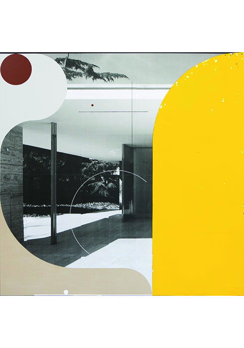 도시의 건축물은 작가에게 끊임없는 영감을 주는 소재다. 관찰자의 시선으로 포착한 공간의 이미지를 수집하고 다시 꺼내보며 경험과 기억에 기반한 재미있는 요소를 발견한다. ‘The Temperature of Barcelona’는 유럽 여행 중에 루트비히 미스 반 데어 로에(Ludwig Mies van der Rohe)의 바르셀로나 파빌리온을 보고 1백여 년이라는 세월이 무색한 현대성을 느낀 경험에서 비롯된 작업이다. 이후 이러한 역사적인 건축물에 사용된 소재가 오픈한 지 얼마 안 된 최신 유행 카페에서 사용되는 걸 보며, 오늘날 생활에서도 여전히 찾을 수 있는 모더니즘의 흔적을 통해 과거와 현대의 흥미로운 연결 지점을 발견하기도 했다. 2018년부터 시작한 ‘A Shape of Taste’ 연작을 통해서는 변화하는 건축물의 모습에서 시대의 취향과 감각을 읽어내고자 했다. 서울 시내에서 젠트리피케이션이 일어난 지역의 리모델링 건축을 소재로, 오래된 건물의 표피에 새로이 쌓이는 패널이나 페인트층을 관찰해 작업에 반영했다.