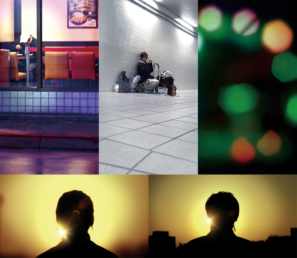 치열하면서도 무료한 각자의 삶을 살아가는 와중에 갑작스레 찾아오는 쓸쓸함과 불안함. 현대사회를 살아가는 이들이라면 누구나 느껴본 적 있는 감정일 것이다. 애초에 자본과 권력, 규율과 통제를 바탕으로 인공적으로 형성된 ‘도시’라는 장소는 자연스레 그 안의 개인을 소외시킬 수밖에 없는 구조를 띤다. 학교나 회사 형태로 생성되는 공동체에서, 또는 익명의 수많은 사람들과 매일 마주하게 되는 거리에서, 군중이라는 이름 아래 묻혀가는 ‘나’라는 존재는 어쩔 수 없이 고립되기 마련. 이러한 사회의 고독한 단면은 일상의 거리에서, 혹은 여행을 떠난 곳에서 우연히 드러나곤 한다. ‘나잇 와치’에서는 지극히 평범해 보이는 도시의 밤 풍경이 펼쳐진다. 영상의 중앙부에는 지하도를 분주하게 지나다니는 사람들이 바쁘게 발걸음을 옮기고, 왼쪽에는 식당에서 혼자 식사 중인 사람들의 모습이, 오른쪽에는 밤거리를 밝혀주는 화려한 네온사인이 뿌옇게 화면을 채운다. 일상적인 도시의 풍경을 배경으로 울려 퍼지는 걸인 연주자의 구슬픈 하모니카 음색은 현대사회를 살아가는 우리의 고독을 섬세하게 어루만진다.