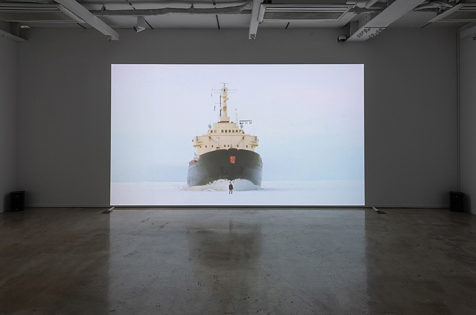 ● 희뿌연 화면 속에 육중한 몸집의 배가 등장한다. 핀란드 연안의 꽁꽁 얼어붙은 바다 위에 떠 있는 쇄빙선. 배 앞에는 검은 실루엣의 남자가 홀로 걷고 있다. 무심히 얼음을 깨부수며 움직이는 쇄빙선의 뱃머리보다 겨우 몇 걸음 앞서 있는데, 일정 거리를 두고 망원렌즈로 촬영한 이 영상에서 인물의 표정은 보이지 않지만 힘겨워하는 듯 느껴진다. 그래도 터벅터벅 행보를 멈추지 않고 전진하는 사람은 작가 자신이다. 느린 듯 무감각하게 뒤따라오는 배를 등지고 하염없이 걷고 또 걷는 것 말고는 별다른 변화 없이 10분 10초가 흐르는 영상의 제목은 ‘Nummer Acht(No. 8), everything is going to be alright’(2007).