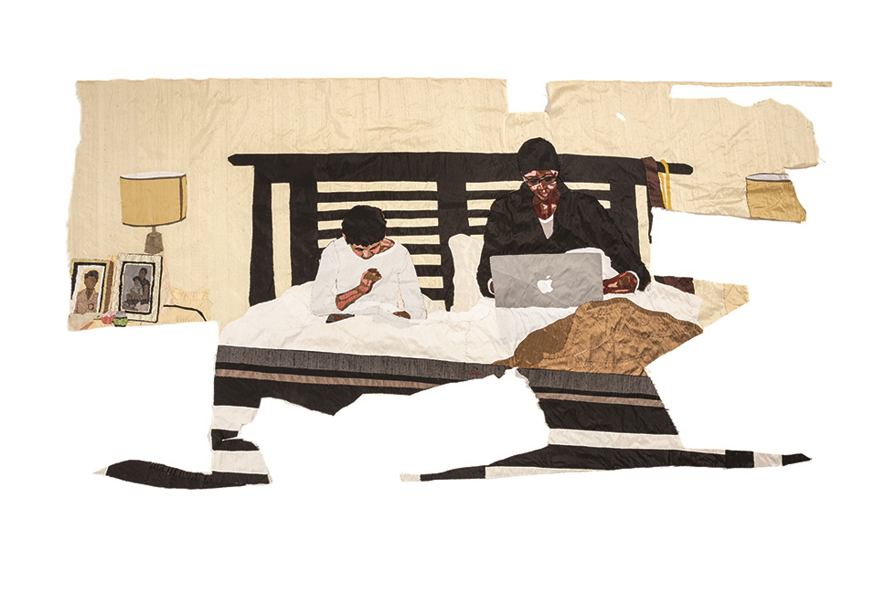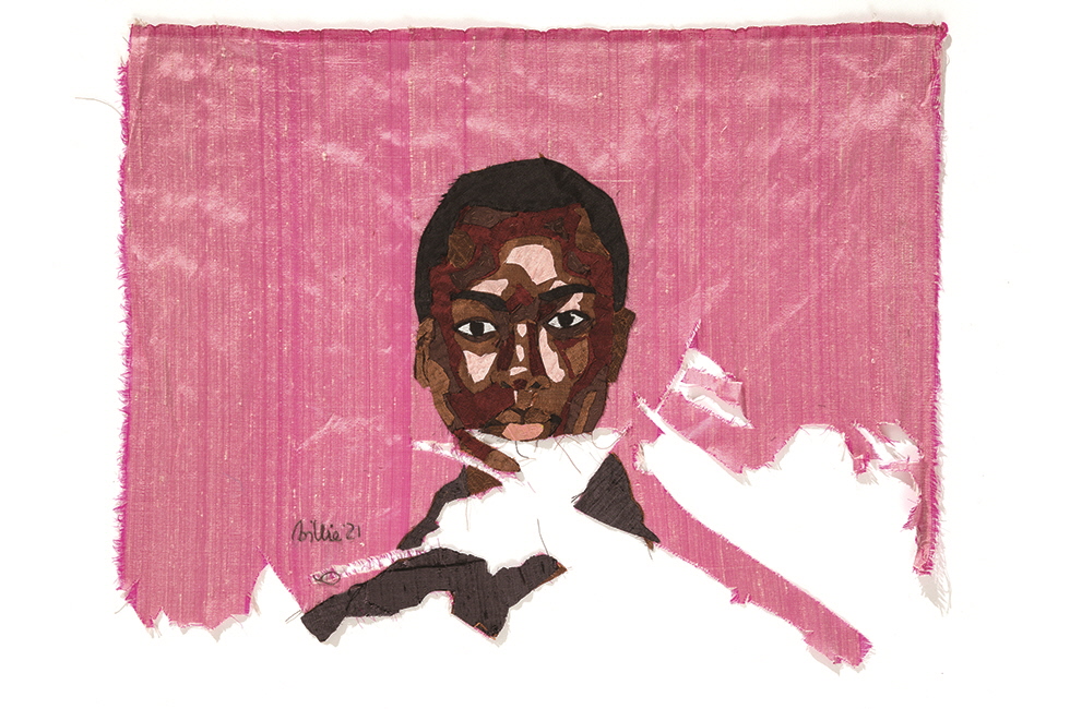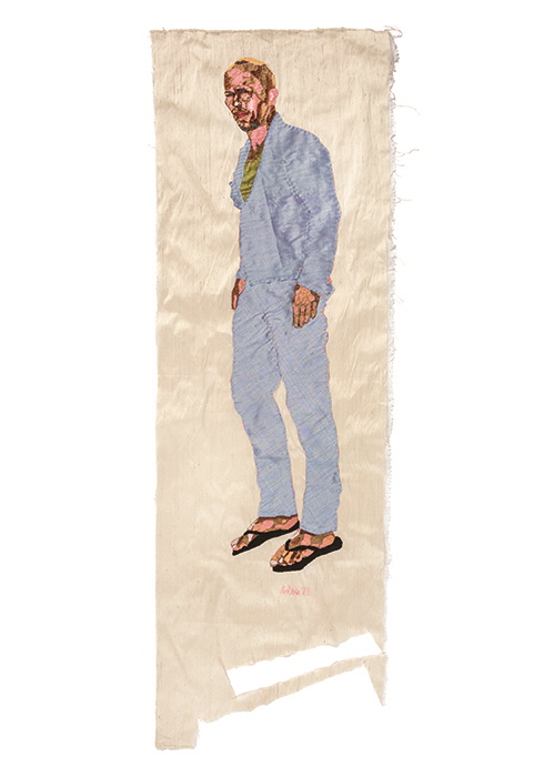 ‘Family Ties’ (detail, 2021), hand-stitched silk collage installation, dimensions variable