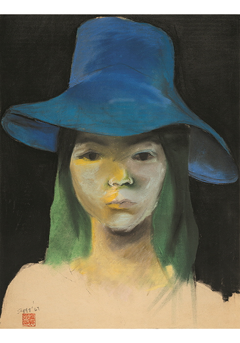 자화상(푸른 모자를 쓰고)’(1967),종이에파스텔,61X 46㎝,개인소장
