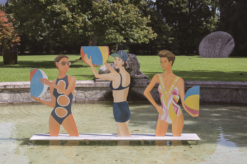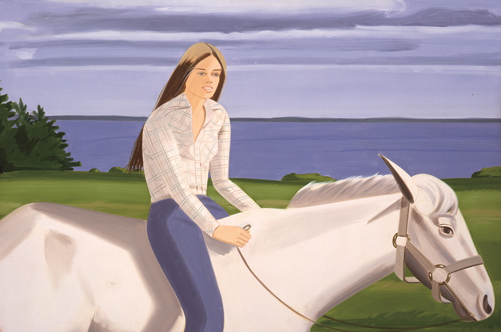 ●●● 가장 미국적인 회화를 구축한 카츠 작품의 특성은 1976년 완성된 ‘말을 탄 진(Jean on Horse)’이라는 작품에서 여실히 드러난다. 호수와 하늘은 맞닿아 있으며 푸른 들판을 거니는 말 위에 올라탄 진이라는 여성은 청바지와 흰색 체크무늬 셔츠를 입고 있다. 이토록 단순하게 절제된 화면에서 자유롭고 거칠 것 없되 한없이 사람 좋은 한 인물의 영혼을 모두 표현했다. 옛 인물화에서도 말 위의 인물을 묘사하곤 했다. 그런데 그 주제가 권위였다면, 카츠가 그린 것은 무한한 자유와 공평무사한 평등이다. ‘컷아웃(cut-out)’ 시리즈도 그의 인물화를 논할 때 빼놓을 수 없다. 스테인리스 강판에 에나멜로 인물을 그리고 인물의 형상대로 강판을 오려내 실내나 실외에 설치하는데, 이 시리즈로 카츠는 회화사에 위대한 업적을 남겼다. 2016년에 완성한 ‘찬스(Chance)’라는 작품을 보자. 수영복을 입은 세 여성이 물놀이 공을 들고 노니는데, 각자 독립된 채 저마다의 아름다움을 한껏 발산한다. 이들은 화사하되 사치스럽지 않고 당당하되 분위기를 깨지 않는다. 실제 물놀이장에 설치되어 회화 속 인물들이 사실과 가상의 경계를 사뿐히 넘나든다.