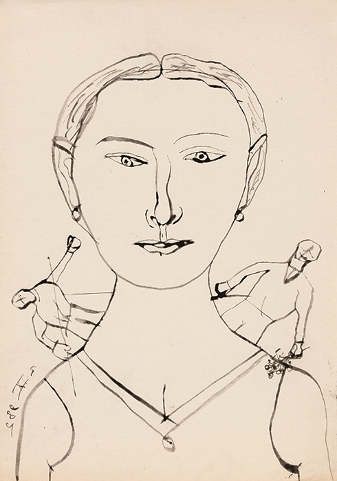 ●●● 미트로이의 초상화는 정면 또는 측면을 그린 여성과 남성의 형상을 보여준다. 이 초상화들은 같은 시기에 제작한 작가의 사진 작업을 반영하는데, 대개 루마니아 시골에서 찍은 두건을 쓴 나이 든 여성들의 흑백사진 등을 묘사한다. 짙은 단색 배경 위에 드리운 강렬한 검은 선이 개개인의 모습을 두드러지게 한다. 이 삭막한 검은 윤곽을 만들어내는 붓질은 독일 표현주의를 연상시키는 반면 상반신만 드러낸 인물들의 자세와 표정은 종교적 모티브, 전통문화 요소 등을 갖추었다. 단조로운 배경에 공허한 표정을 한 눈 큰 인물의 시니컬한 표정은 신비로워 보인다. 미트로이는 수수께끼 같은 인물 속 숨겨진 ‘진실’의 이면에 주목했다.