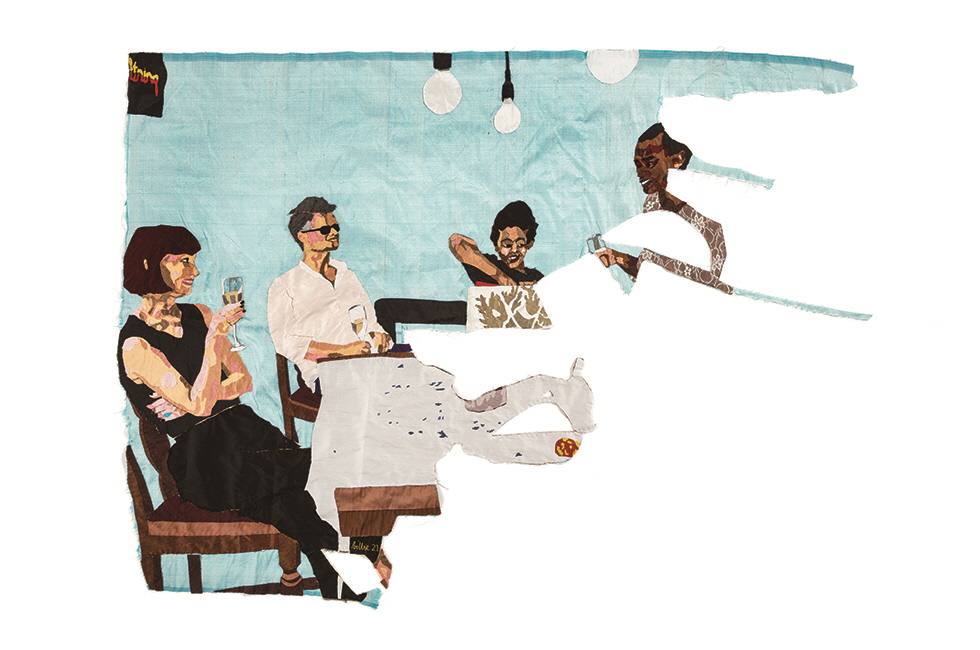 ● 섬세한 손바느질로 엮은 실크 천 조각으로 이뤄진 빌리 장게와(1973~)의 우아한 콜라주는 믿기지 않을 만큼 로맨틱하다. 평범한 가정의 모습을 조형적으로 구성한 그의 작업에는 노동과 놀이, 일과 여가의 경계가 흐릿하게 느껴지는 일상의 풍경이 담겨 있다. 이는 우리가 살고 있는 시대상에 꼭 들어맞는 것이기도 하다. 장게와는 만물을 관통하는 ‘상호 연계성(interconnectedness)’이라는 요소에 대한 이해를 바탕으로 삶의 다양한 측면을 포용함으로써 자신의 작업을 떠받치는 힘과 목적의식을 얻었다. 작가 개인의 우선순위는 모성, 가족, 집, 자유, 마음의 평화와 같은 소재 선택에서 분명하게 드러난다.