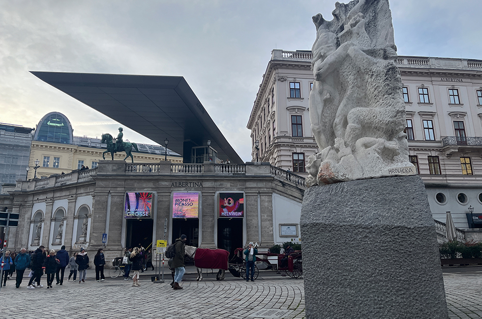 ● 미술 문외한이어도, 또 미술관 이름은 모르더라도 영화 <비포 선라이즈> 촬영지라고 운을 뗀다면 많은 이들이 고개를 끄덕일 알베르티나(Albertina). 원래는 마리아 테레지아 여제의 딸인 마리아 크리스티나의 남편 알베르트 공이 살던 합스부르크 왕가의 15세기 궁전이라 일단 인테리어가 우아한 화려함을 내뿜는다. 알베르트 공은 미술품 컬렉팅에 관심이 많았기에 사후에 그의 이름을 따 ‘알베르티나’라는 명칭을 갖게 됐다. 하지만 2003년 건축가 한스 홀라인이 레노베이션을 맡아 현재의 미술관 외관은 현대적 분위기가 스며들어 있다. 외부에서 보면 길 위에까지 날렵하게 뻗어 있는 날개 모양의 구조물이 바로 그것이다. 어쩌면 과거의 영광에 안주하지 않고 혁신을 시도하겠다는 비엔나의 의지를 나타내는 것 같기도 하다. 미술관 전시 공간도 그처럼 고전적인 아름다움과 현대적인 분위기의 디자인이 교차하면서 매력적인 분위기를 빚어낸다.