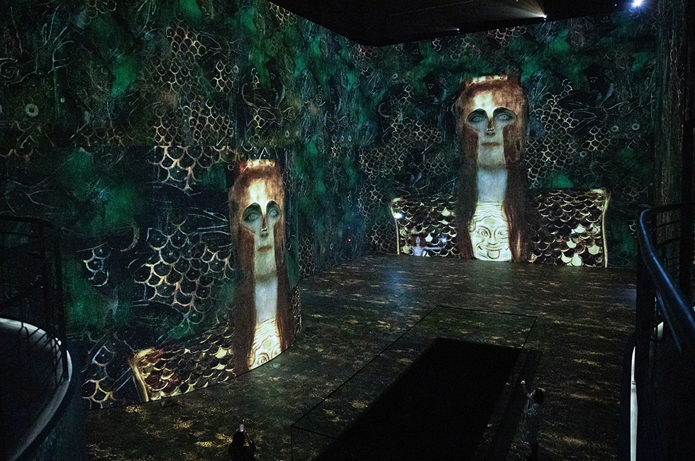 | 새로운 시대의 막을 연 워커힐 시어터 빛의 시어터 <구스타프 클림트, 골드 인 모션> 프랑스에서 시작된 ‘빛의 시리즈’는 버려진 채석장 같은 오래된 장소를 거장들의 예술 작품을 시청각적으로 경험할 수 있도록 탈바꿈하는 문화 재생 콘셉트의 전시다. 2018년 제주에 숨겨진 옛 국가 통신 시설이었던 벙커를 개조해 선보인 몰입형 미디어 전시 ‘빛의 벙커’를 이제 서울에서도 만나볼 수 있다. 이번에 선택한 장소는 벙커가 아닌 서울의 오래된 극장이다. 50여 년간 국내 공연 문화계의 상징적 장소로 일컬어지는 워커힐 시어터를 거대한 미디어 공연장으로 탈바꿈한 ‘빛의 시어터’가 바로 그것. 이번 전시에서는 20세기 황금빛 색채의 화가로 불리는 구스타프 클림트의 작품을 빛과 음악으로 새롭게 해석했는데, 대표작 ‘키스’, ‘유디트’, ‘생명의 나무’ 등을 비롯해 클림트가 전 생애에 걸쳐 창작한 명작을 감상할 수 있다. 프로그램 상영 시간은 총 60분으로, 앞서 언급한 클림트의 작품들에 이어 울트라머린 컬러 작품으로 유명한 이브 클랭의 ‘인피니트 블루’, 영화 제작자이자 음악가 토머스 번스의 ‘벌스’와 우리 기억의 본질을 성찰하는 ‘메모리즈’ 등 컨템퍼러리 작품들도 감상할 수 있다. 전통적인 공연 극장이 갖춘 샹들리에 조명과 무대장치 등 공간적 특색을 살려 ‘빛의 벙커’와는 또 다른 웅장하고 압도적인 규모의 감각적인 경험을 선사할 것이다.