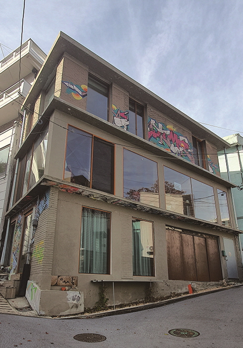 서울 남산 북쪽 기슭 아래, 필동의 어느 오르막길 끝자락. 가리는 데 없이 탁 트인 유리 통창, 외벽의 그래피티가 인상적인 3층 건물이 나온다. 미디어 아티스트이자 영화감독 박경근 작가가 지난해 문을 연 필동 팩토리. 박 작가의 거주 공간이자 작업실, 그의 친구인 가구 디자이너 조재원 작가의 작품을 주로 선보이는 가구 쇼룸 썸 컬렉티브(SOME Collective), 그리고 다양한 설치물을 만드는 제작소 아주정밀기계가 사이좋게 들어서 있는 곳이다. 원래 박경근 작가는 을지로에 작업실을 두고 있었으나, 일대가 ‘힙지로’라 불리면서 임차료가 점차 오르기 시작했다. 그래서 작업실을 새로 꾸리기 위해 동네를 물색하다가 필동에서 지금의 공간을 발견했다고 한다. 6개월가량의 리모델링 공사를 거쳐 3층 건물을 완성해가는 과정에서 그는 이 공간을 보다 의미있게 만들 ‘파트너’들과 함께하기로 결정했다. 바로 오랫동안 함께 작업해온 을지로 정밀기계 장인 송병익 대표와 2년 전 만나 친분을 쌓아온 조재원 디자이너다. 리모델링 과정에서 송 대표와 조 작가는 예산의 한계로 우선순위에서 밀려 채우지 못한 건물 구석구석을 저마다의 개성이 묻어나는 조형 언어로 채우고 다듬었다. 레노베이션 설계를 담당한 건축가는 따로 있었지만 이들 역시 철재, 목재를 다루는 자신들의 전문 역량을 슬기롭게 보탠 것.