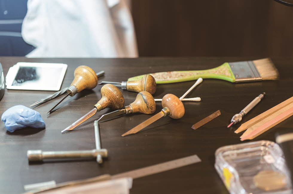 한국 전통 가옥을 그대로 재현한 공간인 한옥 갤러리 ‘아름지기’에서 열린 이번 행사에서는 전시 공간을 콘셉트에 맞게 두 곳으로 나누었다. 먼저 국내에서는 쉽게 볼 수 없었던, 전 세계에 단 한 피스만 존재하는 유니크 타임피스인 메티에 다르(Metiers d’Art) 컬렉션을 고가구들과 함께 전시했다. 블랑팡은 하이엔드 브랜드로서의 역사와 사명감으로 해마다 바젤월드를 통해 다양한 메티에 다르 컬렉션을 선보여왔는데, 이는 워치메이킹 기술에 전통 공예 기술을 결합해 시계를 예술의 영역으로 끌어올린, 장인들의 수작업으로 완성되는 진정한 예술 작품이라 할 수 있다. 이 공간에서는 일본에 기원을 둔, 골드와 구리로 이루어진 합금을 일컫는 샤쿠도(Shakudo?)에 일본 전통 공예 기법인 로큐쇼(Rokusho?), 혹은 표면에 무늬를 새겨 그 속에 골드 소재를 채워 장식하는 상감기법의 일종인 다마스퀴네(Damasquine´) 등 전통 공예 기법을 워치메이킹의 기술력에 적용한 기발한 발상의 작품을 만나볼 수 있었다. 특히 세상에 단 한 점씩만 존재하는 유니크 피스를 한자리에 총망라하고, 블랑팡의 인그레이빙 마스터와 그가 작업한 다이얼, 로터와 무브먼트, 그리고 다수의 메티에 다르 워치 컬렉션을 르 브라쉬(Le Brassus)에 위치한 블랑팡 매뉴팩처 외의 공간에서 선보인 것은 브랜드 역사상 매우 이례적인 일이기에 더욱 의미 깊었다. 더불어 행사장 한편에서는 스위스 본사에서 직접 한국을 방문한 인그레이빙 마스터가 실제 유니크 피스 다이얼을 직접 인그레이빙하는 작업 과정을 시연했는데, 이는 관람객들로 하여금 블랑팡의 오랜 전통을 보다 가까이에서 체험할 수 있게 한 아이디어다. 또 다른 공간에서는 2017 바젤월드에서 선보인 블랑팡의 신제품을 피에르 가니에르 서울에서 마련한 핑거 푸드와 함께 디스플레이했는데, 미슐랭 2 스타를 획득한 피에르 가니에르 서울의 셰프들이 라이브 퍼포먼스를 통해 만들어주는 카나페를 맛볼 수 있어 볼거리를 더욱 풍성하게 해주었다. 특히 이러한 재미있는 구성은 블랑팡이 과거에 제작한 영상 중 하나인 ‘Passion for Excellence(패션 포 엑설런스, 탁월함을 향한 열정)에서 착안한 것으로, 블랑팡이 전하고자 하는 메시지, 즉 하이엔드 시계를 완성하는 과정이 음식을 차리는 과정과도 흡사하다는 사실을 보다 부드럽게, 하지만 그 무엇보다도 강렬하게 관객들에게 전달했다.