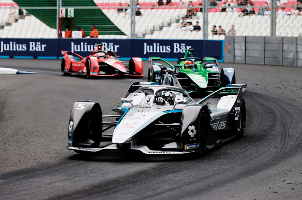 올 들어 신규 등록(수입 승용차 기준) 대수는 줄었지만 전기차는 여전히 가파른 성장세를 보였다. 물론 고유가 같은 외부적 요인과 정부 보조금 같은 ‘당근책’의 덕도 있지만 장기적으로 전기차가 대세라는 데는 물음표를 달 수 없을 것이다. 이미 대부분의 글로벌 완성차 브랜드들은 2030년께면 신차의 절반 정도는 전기차로 내놓을 계획을 내비치고 있다. 그러니 전기차를 둘러싼 다양한 마케팅 행보도 눈에 띄게 늘어나고 있는 건 당연하다. 전기차와 함께하는 미래 라이프스타일의 풍경을 쉽게 가늠하게 만든 최대 규모의 행사로는 단연 포뮬러 E를 꼽을 수 있겠다. 탄소 배출을 지양하는 전기차 스트리트 레이싱 시리즈 포뮬러 E 월드 챔피언십의 시즌 마지막 경기인 서울 E-프리(E-Prix)가 지난 8월 13일(15라운드)과 14일(16라운드)에 걸쳐 잠실 종합운동장 일대 서킷에서 진행되기도 했다(15라운드에는 재규어 TCS 레이싱의 미치 에번스 선수가 우승을, 16라운드에는 로킷 벤추리 레이싱의 에두아르도 모타라 선수가 1위에 올랐고, 시즌 챔피언 타이틀은 메르세데스-EQ(벤츠) 포뮬러 E 팀의 스토펠 반도른 선수가 차지했다). 스피드 추종자들은 당연히 포뮬러 원을 그리워하는 목소리도 냈지만, 포뮬러 E만의 매력이 나름 오감을 사로잡은 행사였다. 지반이 무너지는 게 아닐까 싶을 정도로 떠들썩한 엔진의 소음 대신 바람이 불고 지나가는 듯 초현실적 분위기의 소리는 꽤 이채롭고 매혹적이었다. 소음과 매연이 없을뿐더러 일반 엔진을 장착한 차에 비해 부품 수가 적은 단순한 구조를 활용한 디자인의 미학도 눈여겨볼 만한 부분이다.