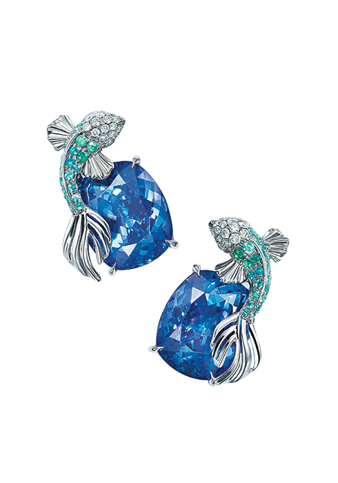 10 믹스드 컷 다이아몬드를 정교하게 세팅한 이 네크리스는 리듬감 넘치는 해안가의 형상을 표현했다. 장인들은 수작업을 통해 다이아몬드로 서로 다른 파도를 묘사했으며 역동적인 썰물과 밀물의 움직임을 담아냈다.