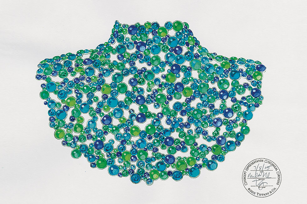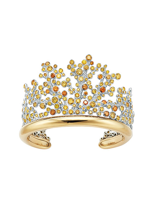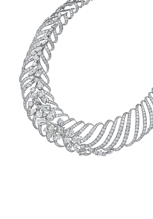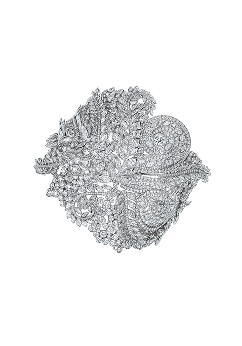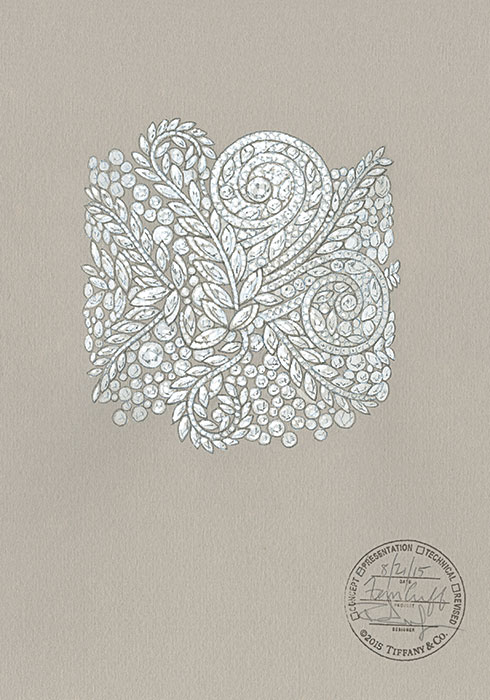 8, 9 양치식물, 잎사귀, 그리고 꽃을 연상시키는 넓은 등고선 형태의 브레이슬릿은 1960년대 티파니 아카이브 스케치에서 영감을 얻어 1천8백 개가 넘는 다이아몬드로 무려 1천 시간이 넘는 수작업을 통해 탄생했다.