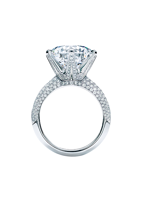 6, 7 티파니™ 세팅 탄생 1백30주년을 기념해 티파니 장인들은 이 아이코닉한 반지에 최상의 D컬러, IF등급의 8.55캐럿 다이아몬드를, 플래티넘 밴드에는 다이아몬드를 정교하게 파베 세팅했다.