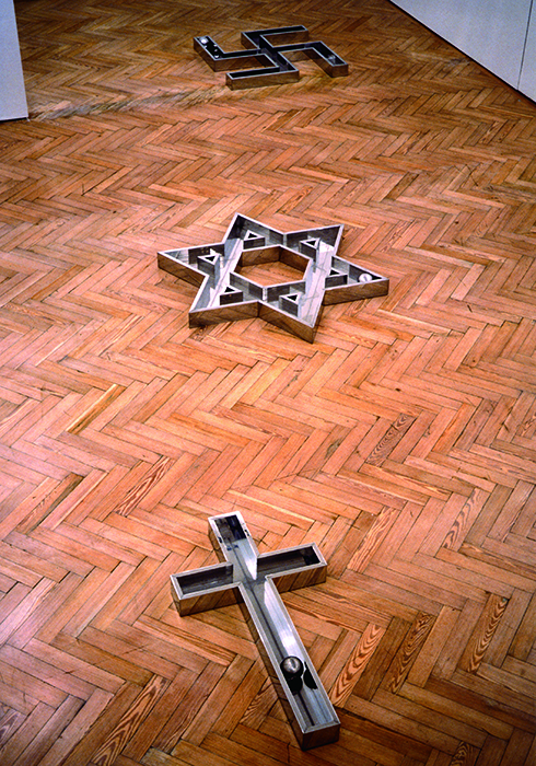 Walter de Maria_Milan 세계적인 대지 미술가 월터 드 마리아(Walter de Maria)의 개인전(1999. 11.11~2000. 1. 4). 이 역시 월터 드 마리아가 첫 번째로 가진 개인전이다. 1960년대와 1970년대에 창작된 조각 작품을 세 그룹으로 나누어 전시했는데, 작가의 주요작인 ‘Cross’(1965), ‘Museums Piece’(1966), ‘Star’(1972), ‘Gold Meters’(1976), ‘Beds of Spikes’(1968~1969) 등을 여러 기관에서 공수해 왔다.