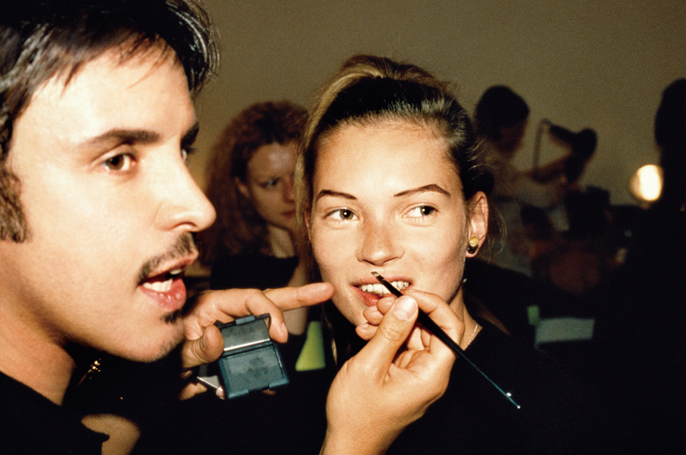 8 백스테이지를 종횡무진 누빌 무렵 슈퍼모델 케이트 모스를 메이크업하고 있는 프랑수아 나스.