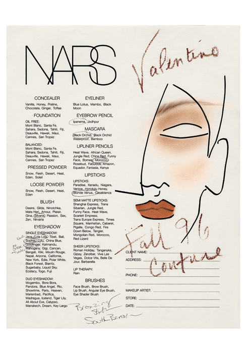 9 1996년 F/W 발렌티노 뉴욕 패션 위크를 위해 스케치한 나스의 메이크업 차트.