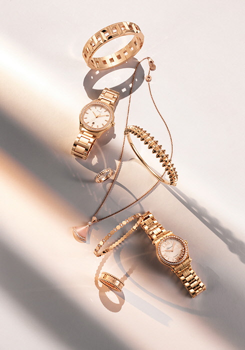 햇살에 그을린 피부 위에서 그 어떤 컬러보다 빛을 발하는 로즈 골드 주얼리.