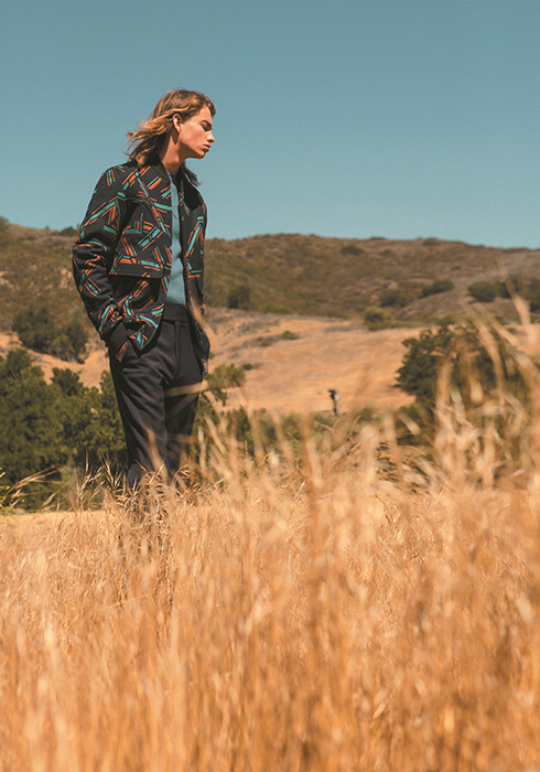 네이비 패턴 보머 재킷 4백69만5천원, 블루 톱 1백70만5천원, 네이비 팬츠 1백66만5천원 모두 에르메네질도 제냐 꾸뛰르.