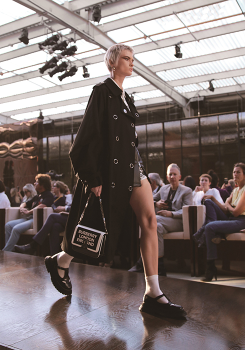 8 지난 2019 S/S 컬렉션 런웨이에선 브리티시 펑크 룩과 로고 프린트 TB 백을 매치했다.